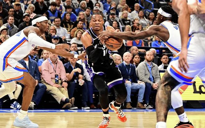 而国王队的阵容还不仅于此,他们的后卫群非常豪华,除了德罗赞和拉文之外,本就有乱战得分手,场均能拿15+得分的蒙克;这个休赛期又接连签下了施罗德和威少,前者是联盟最佳第六人候选者,国际赛场上的顶尖后卫,世界杯冠军+欧锦赛双料冠军。后者则是NBA历史三双王,老牌超级球星之一。
